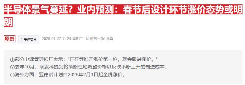 据报道,继晶圆代工、封测报价纷纷上扬之后,芯片设计作为半导体产业链的重要一环,其报价也有望迎来上涨。
