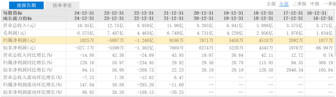 2024年,倍轻松扭亏为盈。而且是在营业收入同比下滑至10.85亿元的情况下,录得归母净利润约1025.32万元。