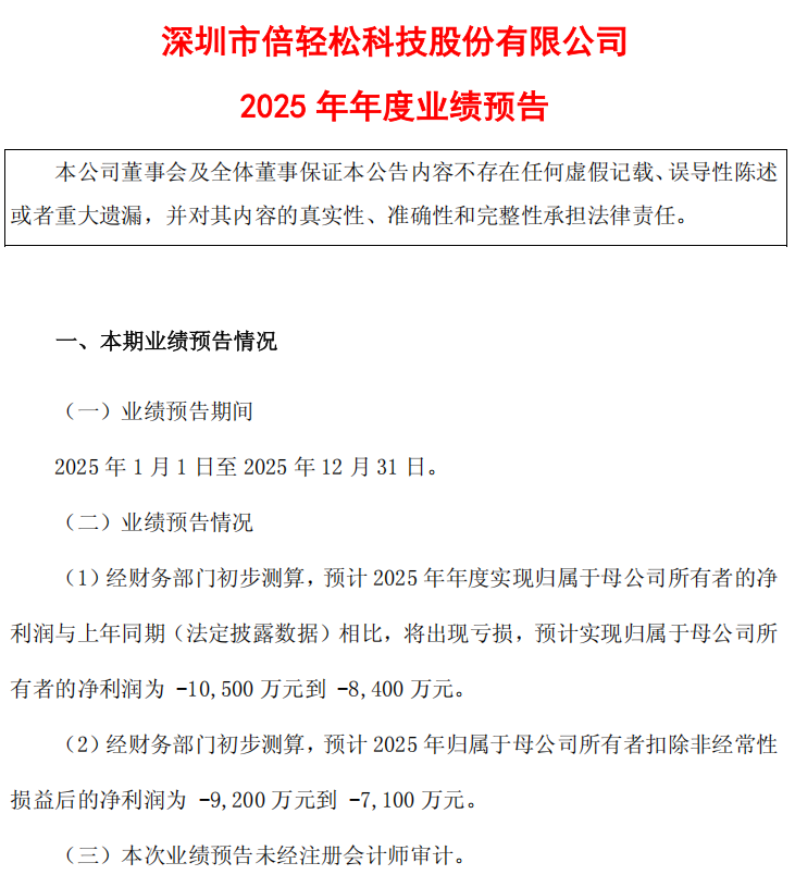 实际上,倍轻松2025年前三季度的数据已经预示了这一趋势,报告期内其归母净利润亏损已达约6563万元 。