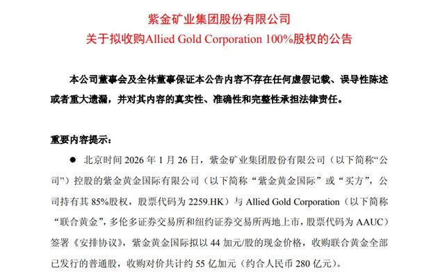 紫金矿业昨天发布了一个公告,又是大手笔收购。