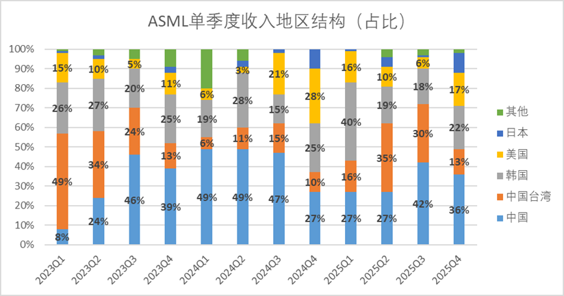 图:ASML单季度收入地区结构,来源:企业财报,锦缎研究院整理
