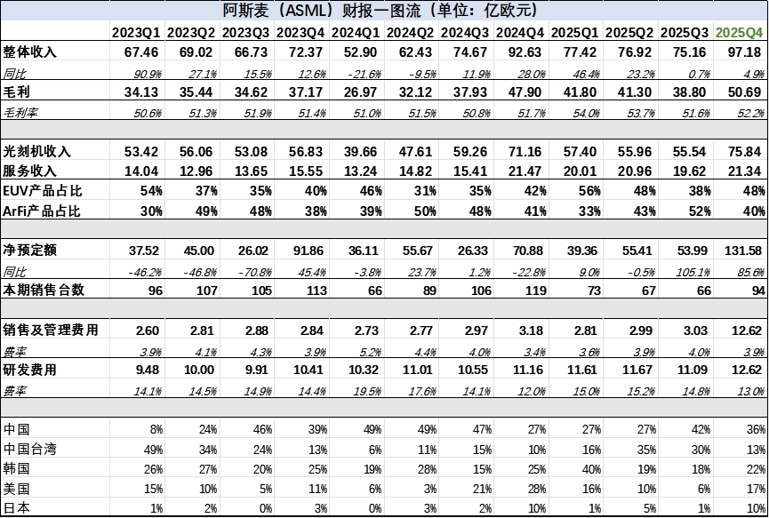 图:ASML财报汇总,来源:企业财报,锦缎整理