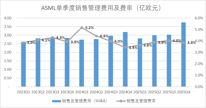 图:ASML单季度费用及费率情况,来源:企业财报,锦缎研究院整理