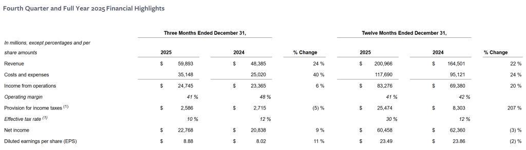 Meta2025年四季度和全年业绩概要。来源:Meta