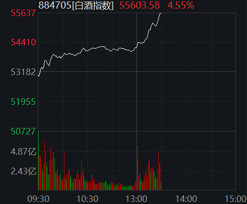 1月29日,白酒股午后持续拉升,截至发稿,白酒指数涨超4%,个股全线飘红。