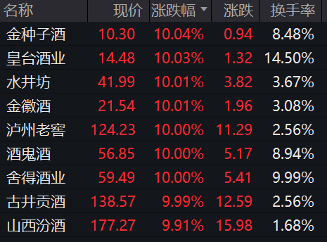 白酒股涨势不减,截至发稿,泸州老窖、金种子酒、水井坊、古井贡酒等多股涨停。