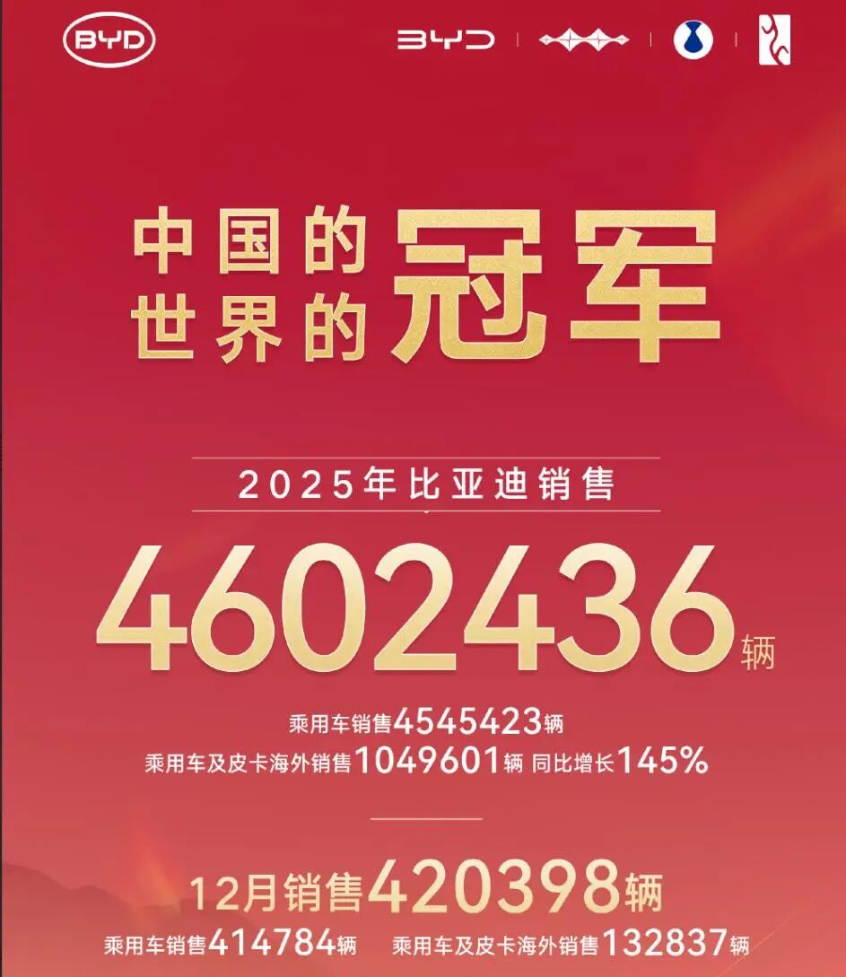 并且,全球新能源汽车销冠的宝座,也被比亚迪抢走了!
