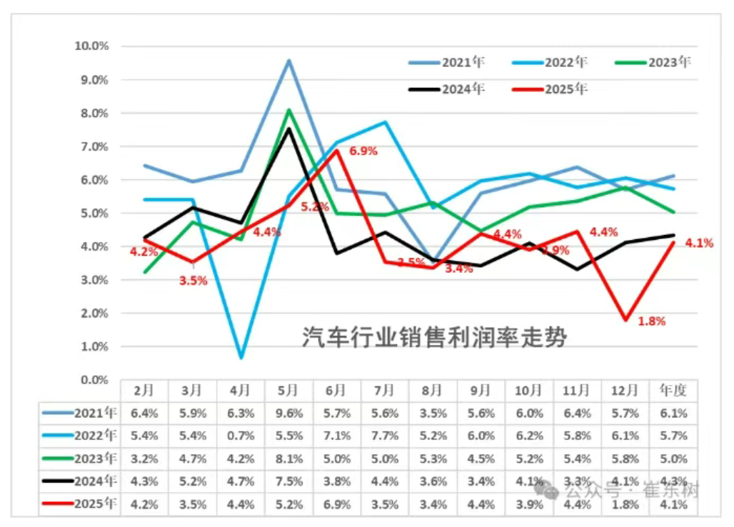 2025年1~12月,行业销售利润率降至4.1%,创下历史新低。