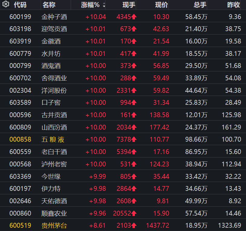 1月29日,A股白酒股迎来罕见“狂欢”。经历了2025年一整年的回调后,白酒板块突然爆发。18家白酒企业中,贵州茅台(600519.SH)上涨8.61%,顺鑫农业(000860.SZ)上涨9.96%,其余16家公司悉数涨停。