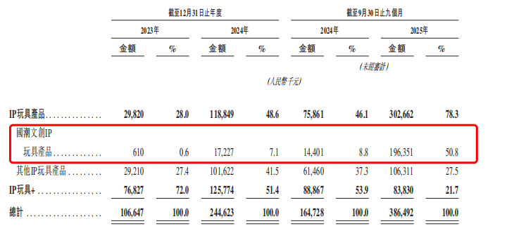 2025年前三季度,桑尼森迪的国潮文创IP玩具收入,同比激增126.3%至1.96亿元——从2023年的61万元收入发展至此等规模,国潮文创IP业务只用了不到3年时间。