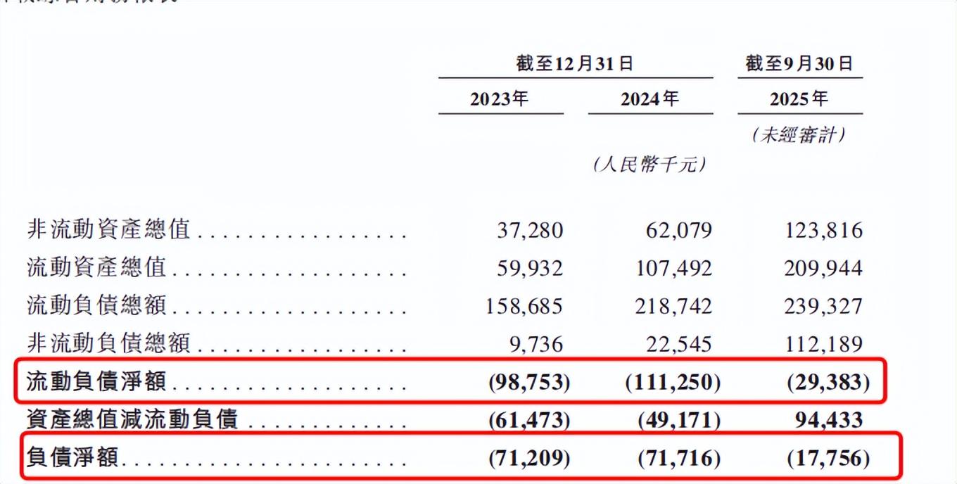 招股书显示,2023年、2024年及2025年前三季度,桑尼森迪分别录得负债净额7120.9万元、7171.6万元及1775.6万元;流动负债净额分别为9875.3万元、1.11亿元及2938.3万元。资金链,仍然偏紧。