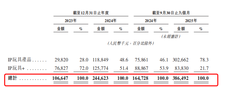 一方面,用规模对冲薄利。招股书显示,桑尼森迪IP玩具销量从2023年的640万件,飙升至2025年前三季度的5810万件,不到三年翻了近10倍。与此同时,公司持续提高生产效率,当前已实现7×24小时全自动化生产,日均产能超过100万件,以高周转刺激复购。