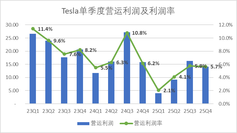 2025年,是特斯拉史上首次年度营收下滑,GAAP(公认会计准则)净利润约38亿美元,同比下降约46%。