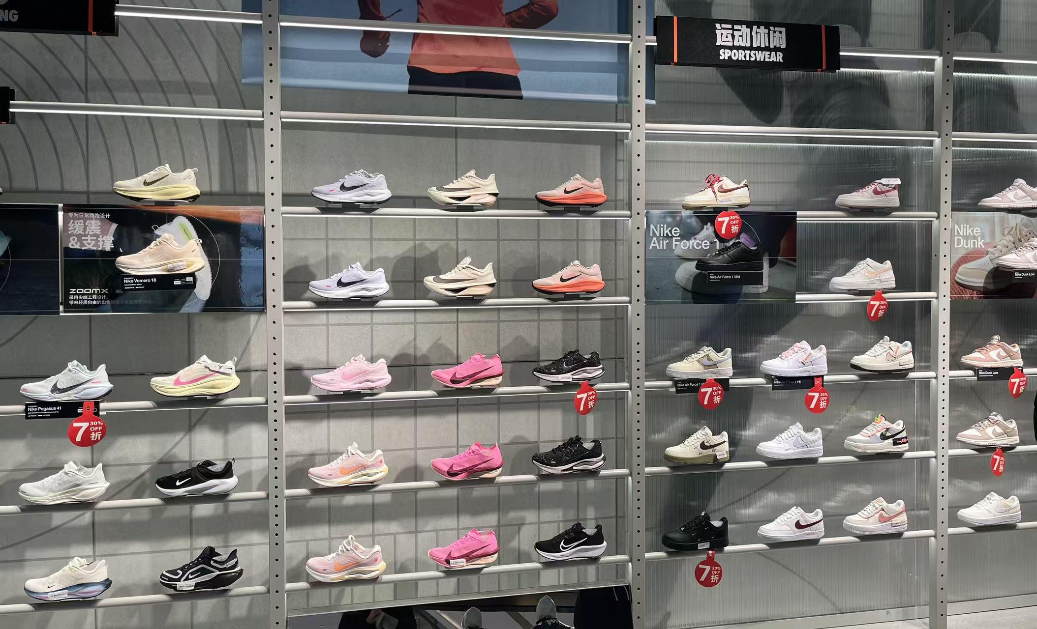 耐克线下门店部分鞋履七折销售/拍摄:武冰聪