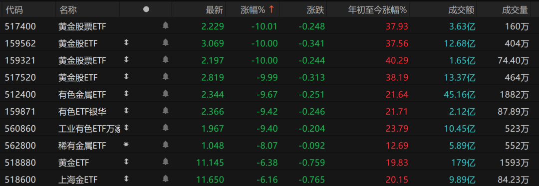 与此同时,黄金ETF(518880)与上海金ETF(518600)的跌幅也超过了6%。