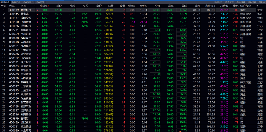 然而,其他主要黄金企业如赤峰黄金、山东黄金、四川黄金等则未能幸免,纷纷跌停。