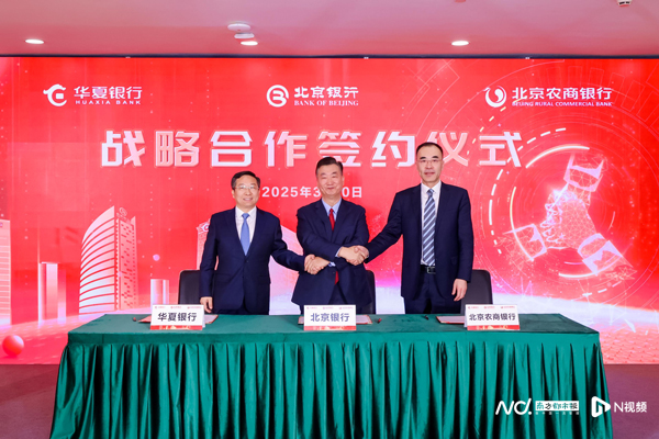 2025年3月10日,北京银行、华夏银行、北京农商行签署战略合作协议。时任北京银行党委书记、董事长霍学文,北京农商行党委书记、董事长关文杰,华夏银行党委书记杨书剑代表各自机构出席签约仪式。