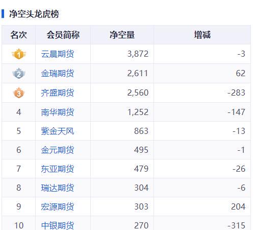 不过,沪金期货主要净空头席位并未有明显加仓空单。