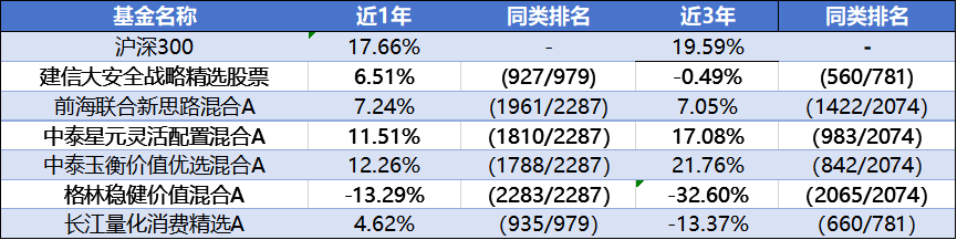 6只全年“躺平”的基金,平均收益是5.04%,全部跑输同期沪深300和业绩比较基准。