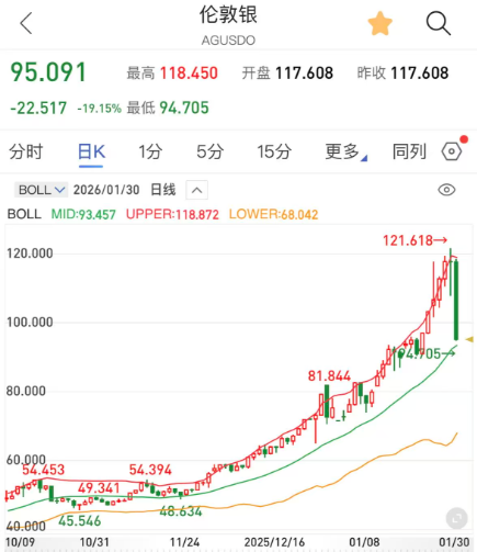 现货白银跌17.8%,直接跌破100美元/盎司。