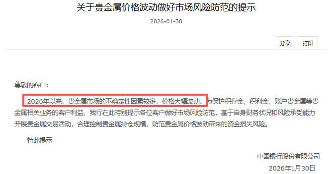 中国银行今晚也发布了关于贵金属价格波动的市场风险防范提示。