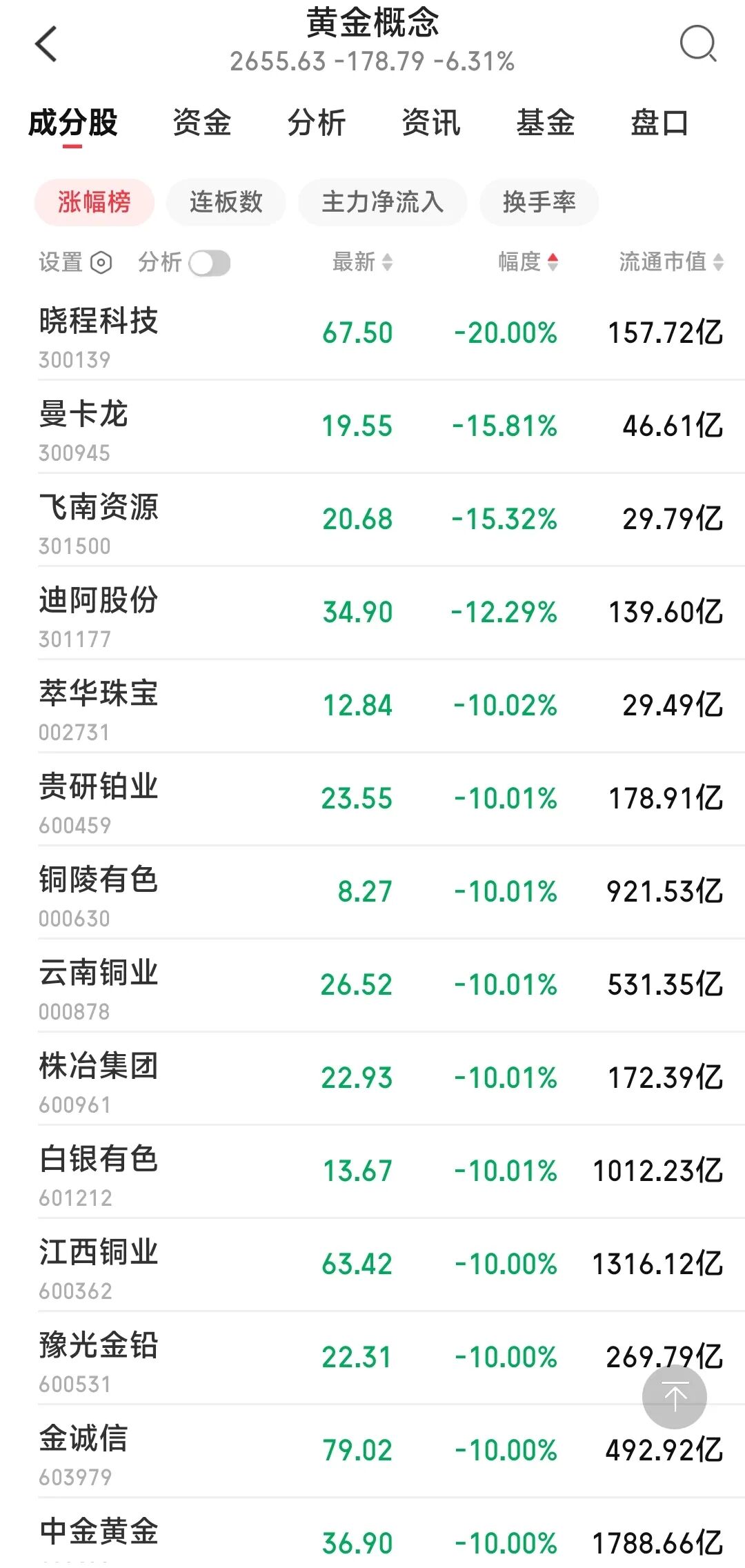 其中,黄金概念的跌停个股数量达到24只!