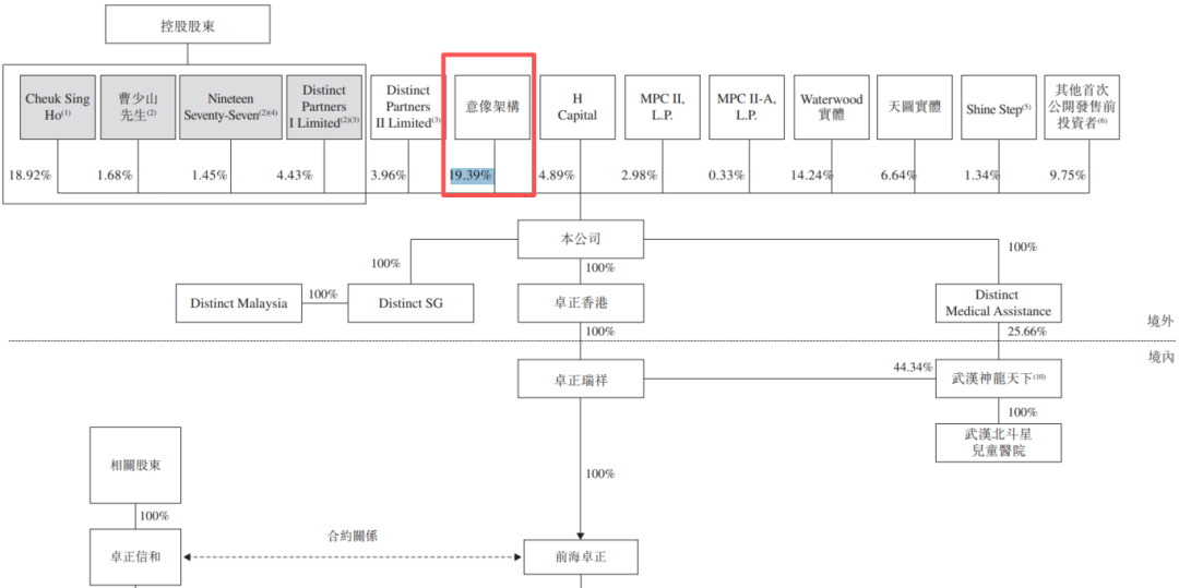卓正医疗非执行董事、北大校友陈小红控制的H Capital持股14.89%,富德生命人寿通过Waterwood实体持股14.24%,天图投资(01973.HK)持股6.64%。