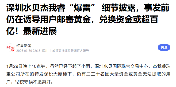 另一边是本该躺赢的黄金投资者,却收到了一个令人窒息的消息,深圳一家名叫杰我睿的平台上,不管是你存的黄金,还是账户余额,全没了,只有一份本金打两折的赔偿方案,你爱签不签。