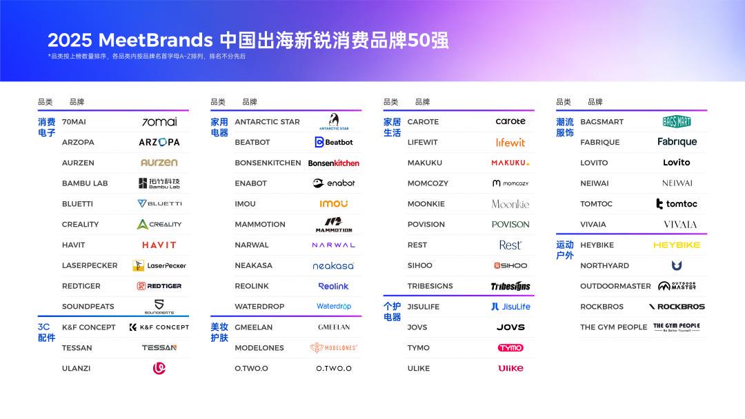 同样,《2025 MeetBrands中国出海新锐消费品牌榜单报告》中的50强品牌,无论来自哪个行业、瞄准哪个市场,都展现出一种共同特质——他们正在构建系统化的出海能力体系。