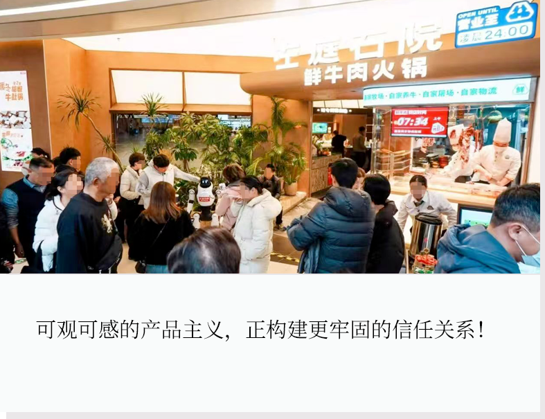 在门店入口处的明档里,厨师现场切配牛肉的场景,将“当天鲜肉,拒绝冷冻”的承诺转化为直观的视觉体验。流程上,坚持当天鲜肉、当日使用,避免冷冻对口感与体验的折损。这一设计并非单纯的表演,而是品牌供应链能力在前端的自然延伸。