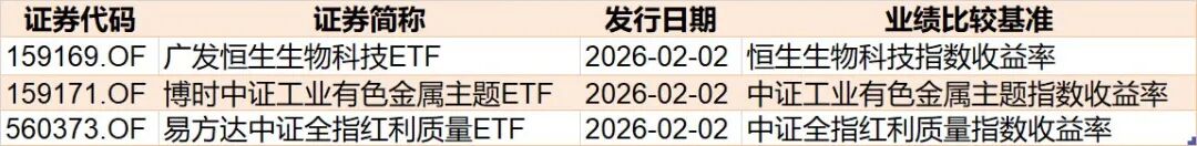 目前已有3只ETF披露下周发行,跟踪标的为红利质量、有色、恒生生物科技等。