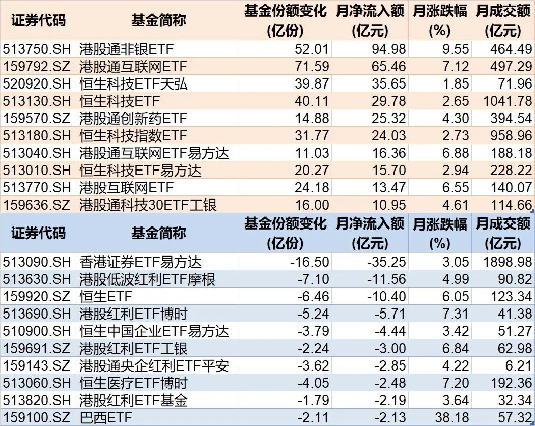 值得注意的是,虽然本月A股三大指数均出现上涨,但资金借道ETF离场迹象明显。
