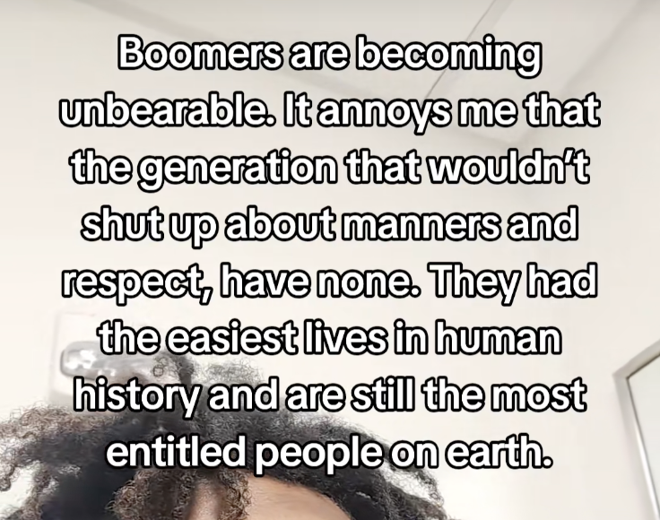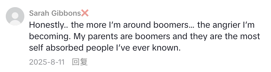 “越和婴儿潮一代打交道我越愤怒。我父母是婴儿潮一代,他们是我见过最自恋的人。”
