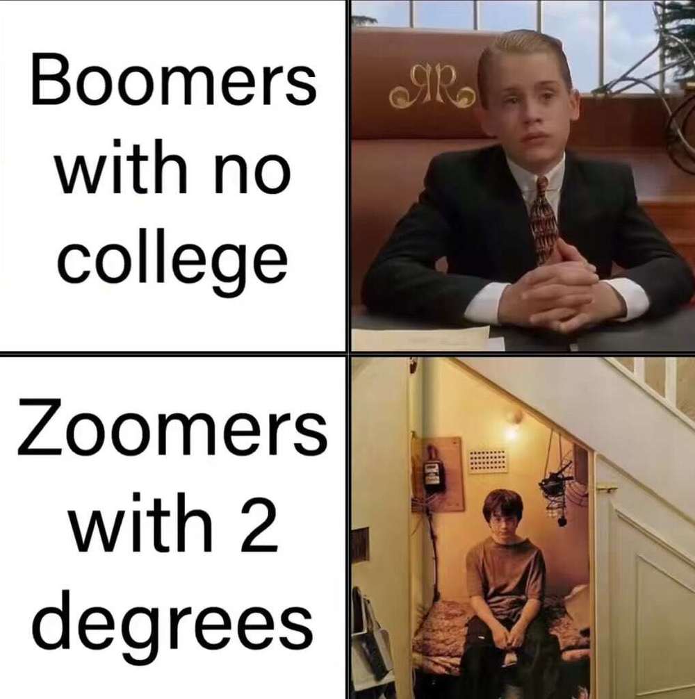 千禧一代和Z世代的成长路径:学贷-打三份工-欠一屁股债-有可能买一套公寓(大概率没可能)
