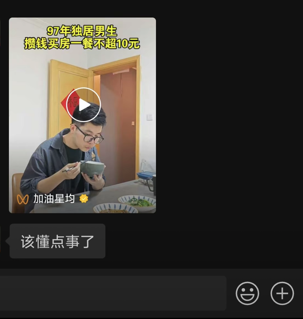 父母天真地觉得,年轻人一个月挣了多少钱就能存多少钱,平时看多了视频号的“北漂一天花10元极限生存挑战”,就催着子女在一线城市cosplay丐帮帮主。