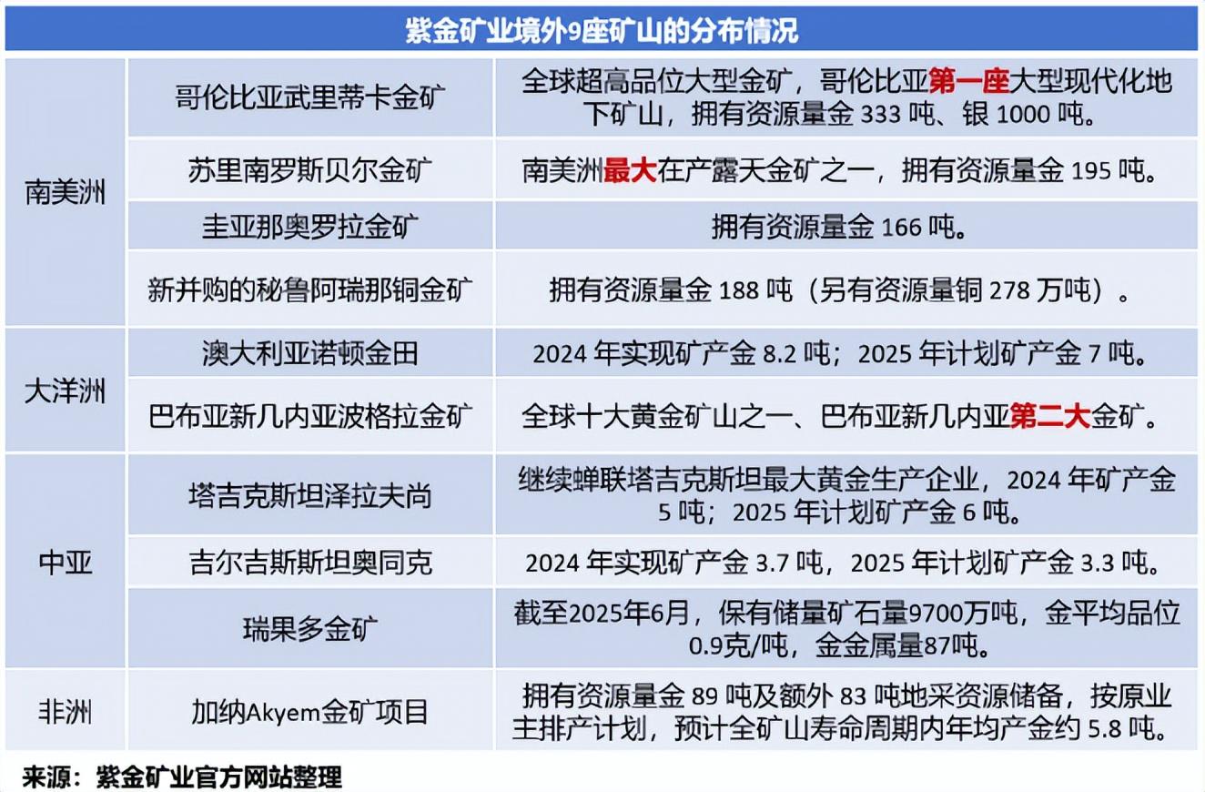 目前,紫金矿业在境外共拥有9座黄金矿山,分布于南美、中亚、非洲和太平洋等地区。