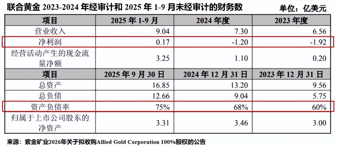 此外,联合黄金的负债也较高。截至2025年三季度末,该公司的资产负债率高达75%。