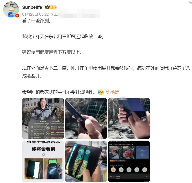 “这种贵的折叠屏手机,在冬天更像是一个需要时刻呵护的精细艺术品,而不是那种能陪着你走南闯北的坚固工具。”