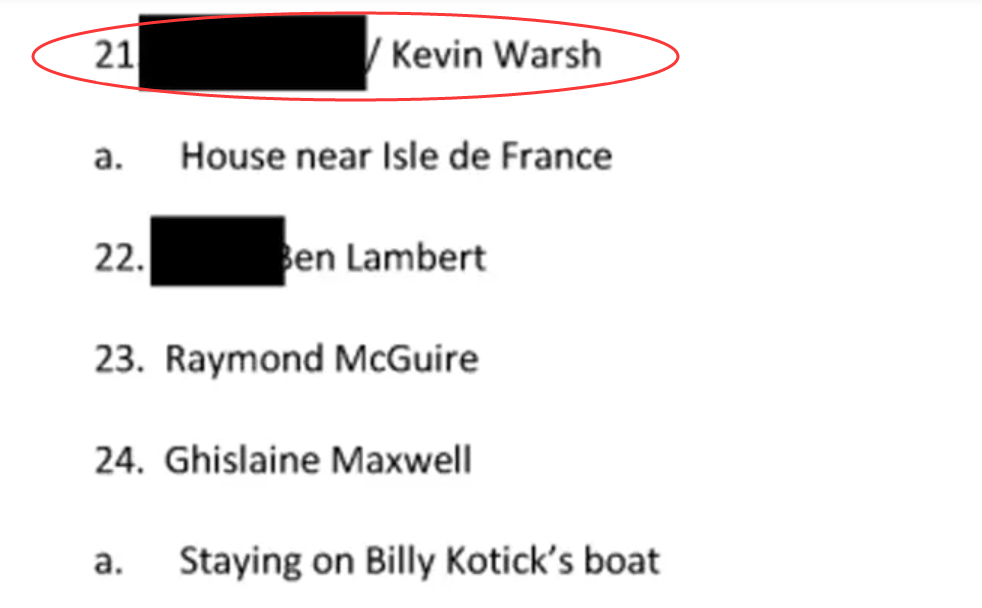 根据美国政府本周五最新公开的爱泼斯坦相关文件,特朗普提名的下一任美联储主席人选凯文·沃什,出现在多份与爱泼斯坦社交活动有关的邮件和宾客名单中。