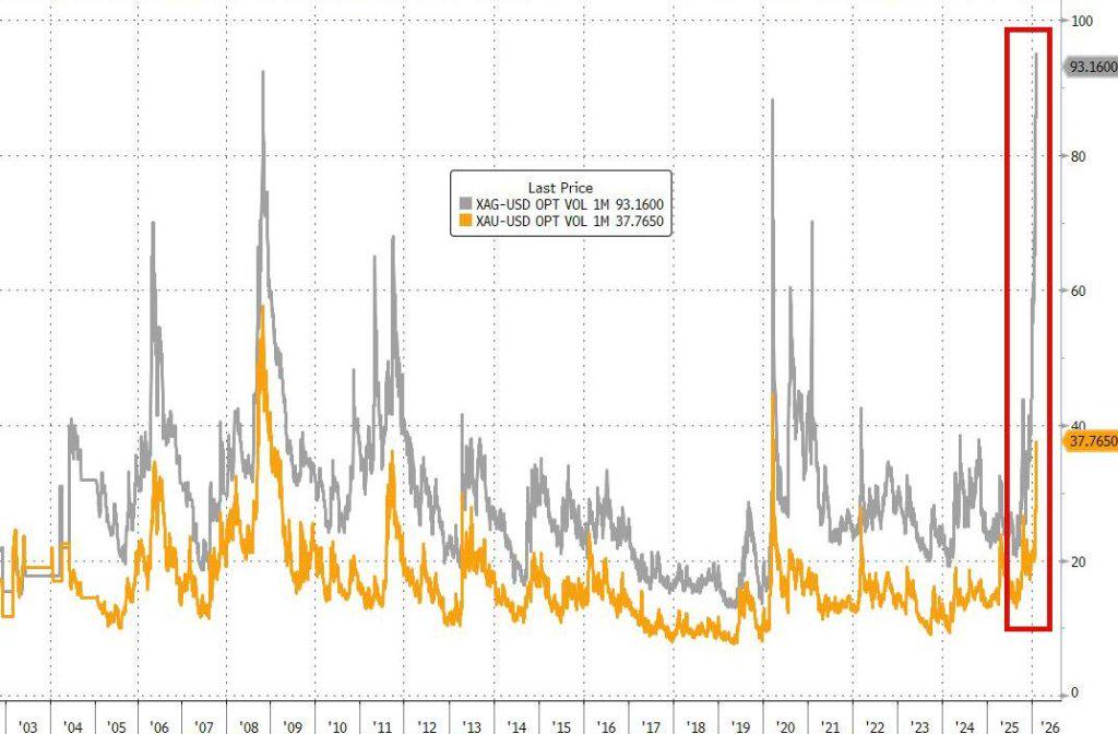 白银波动率飙升至仅在全球金融危机最黑暗时期和新冠疫情封锁期间才见过的水平。这种极端波动反映了杠杆、散户狂热和动量追逐的碰撞。