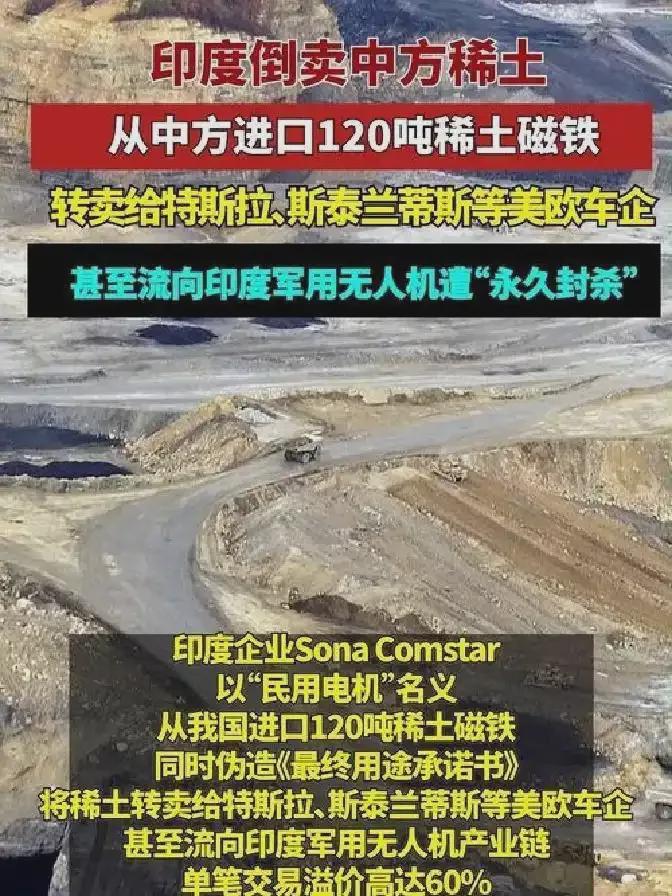 咱先把时间线捋清楚:2025年,印度韦丹塔资源公司用几十份假文件,从中国骗走120吨稀土,说是造电动车电机,结果转手就卖给美国雷神公司,直接进了导弹制导系统生产线。