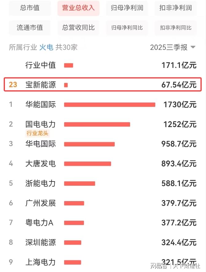在30家A股上市火电企业中,宝新能源处于什么水平呢?