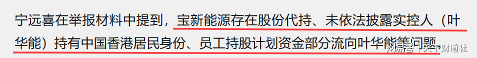 实际上,揭开盖子的正是宝新能源前董事长宁远喜,其实名举报叶华能隐瞒香港身份、侵占股权激励款等问题,引起市场高度关注。