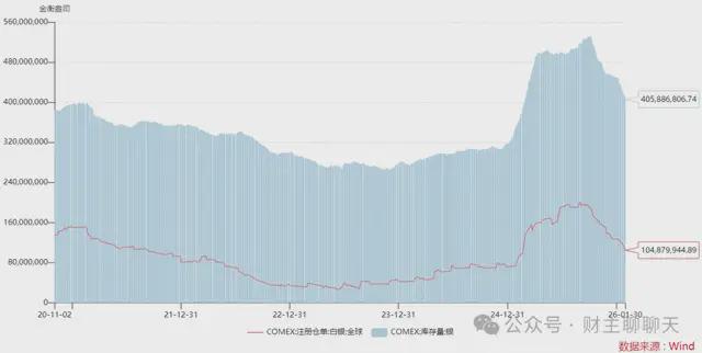 相比之下,Comex的白银库存目前是全球最多,其总库存量最高曾在2025年10月达到5.31亿盎司,但因为最近3个月的逼仓,截至1月30日,其总库存量已经快速下降至4.06亿盎司。