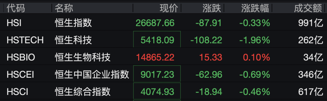 2月3日,港股高开低走,截至发稿,恒生科技指数跌近2%,恒指同样转跌,现跌0.33%。