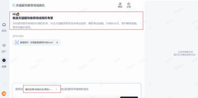 近日,天猫服饰推出了一款名为“推荐商机AI”的智能体,它以天猫平台多年沉淀的推荐场域运营逻辑为内核,直接向商家输出可执行的策略建议。