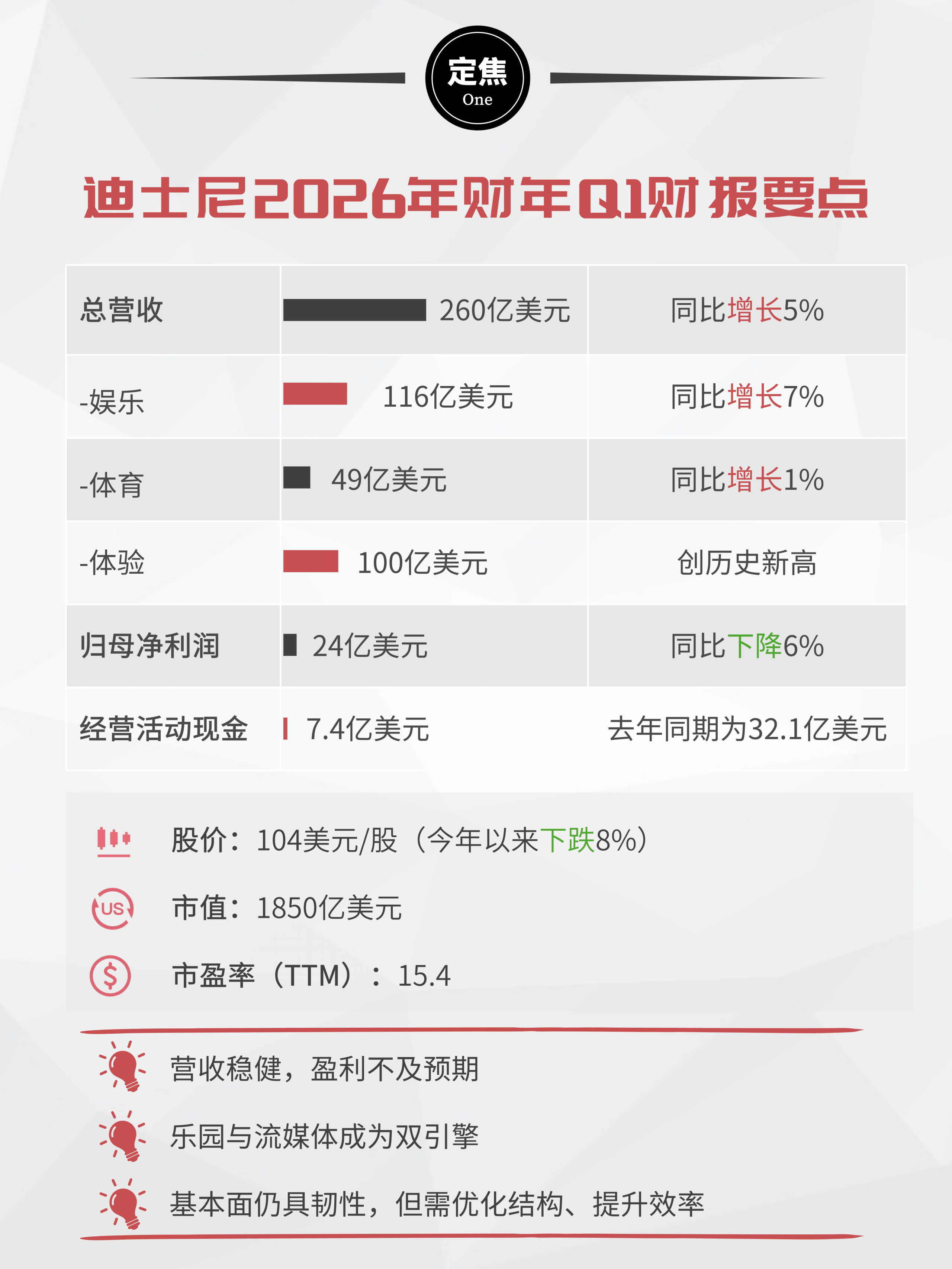 2026年2月2日,迪士尼发布了2026财年第一季度财报(截至2025年12月27日)。