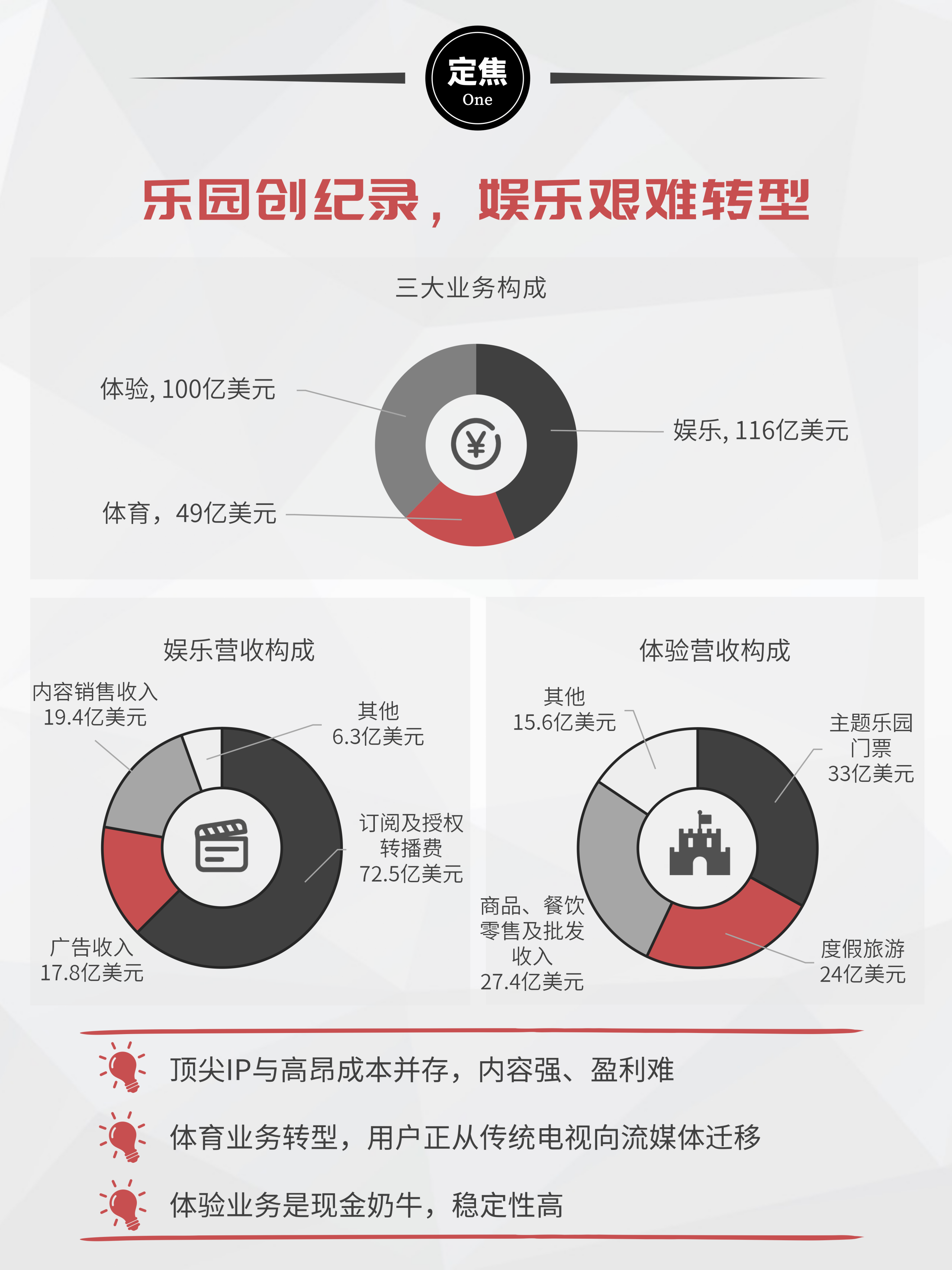 从各个业务板块来看,体验业务(Experiences,主要指线下乐园)是本季财报的最大亮点。该板块季度营收首次突破100亿美元大关,同比增长6%,创历史新高。