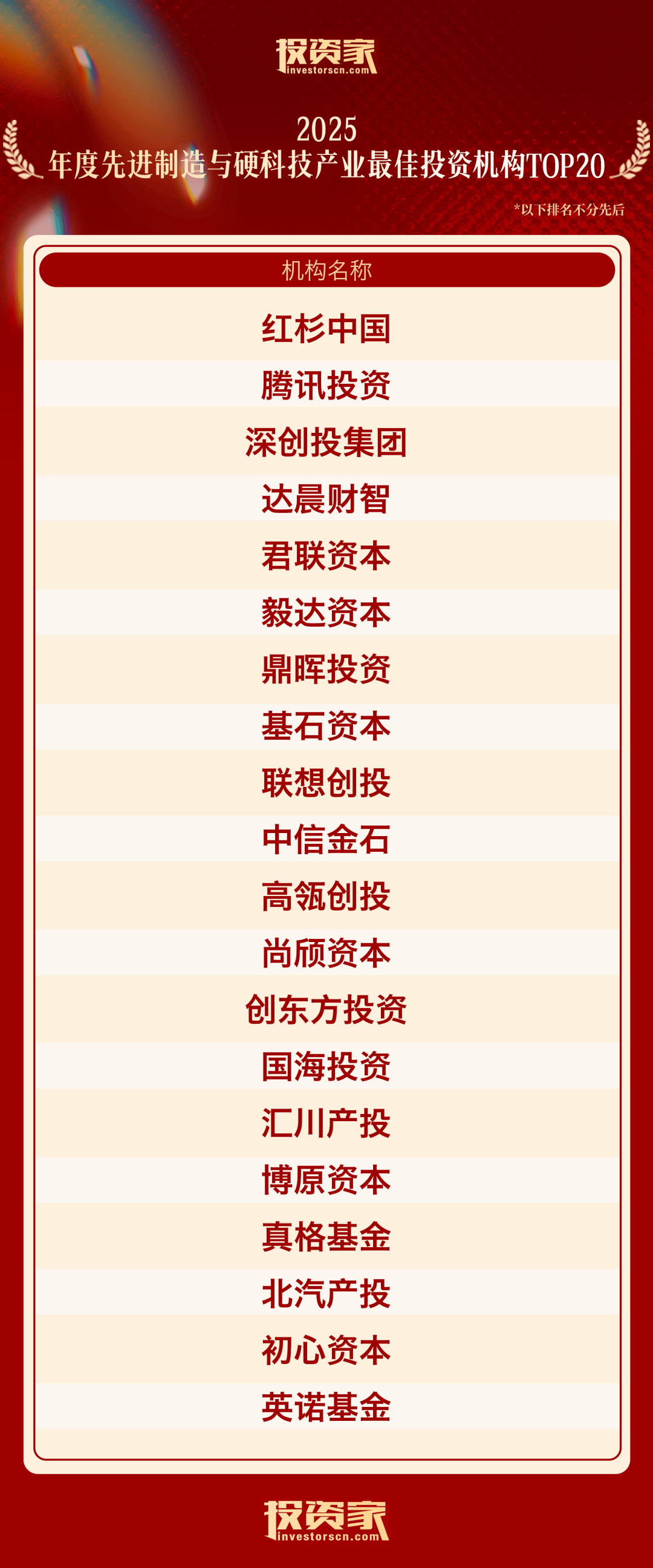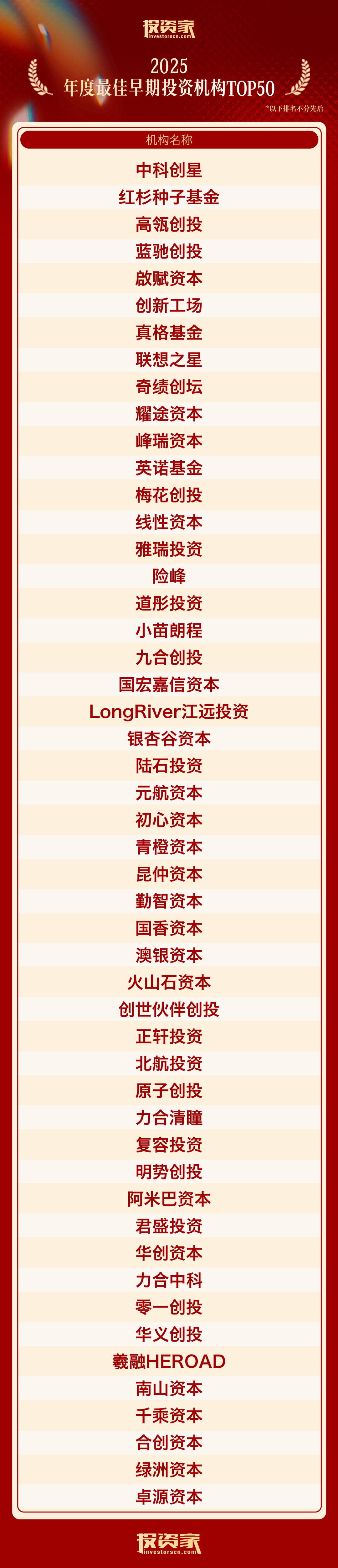 以下为“投资家网·2025股权投资年度榜单”: