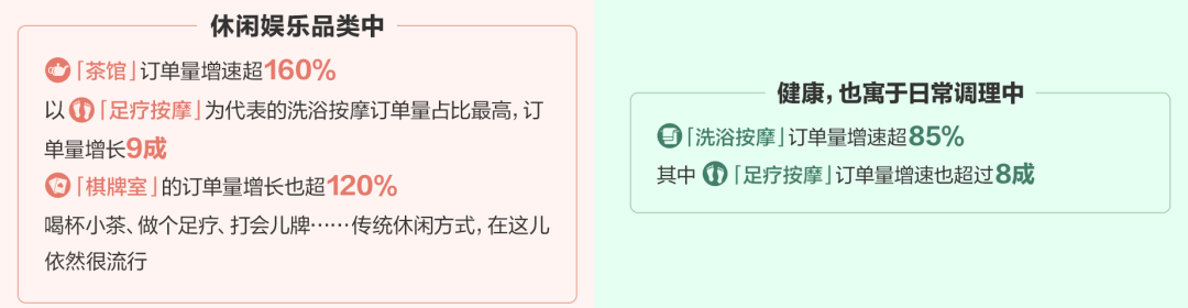 过去一年中,武汉的洗浴按摩订单量增长9成,杭州的洗浴按摩订单量增速超85%,其中足疗按摩订单量增速也超8成。